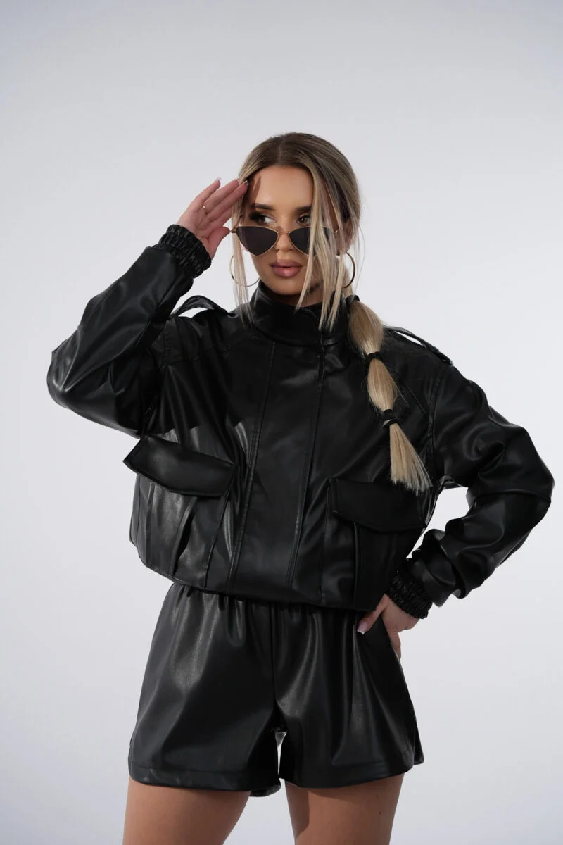 Ta kurtka z eko skóry to połączenie nowoczesnego stylu i elegancji, której nie może zabraknąć w szafie żadnej modowej entuzjastki. W klasycznym kolorze czarnym, doskonale pasuje do różnych stylizacji i okazji. Wykonana z wysokiej jakości materiałów imitujących skórę naturalną, kurtka ta nie tylko prezentuje się stylowo, ale także jest przyjazna dla zwierząt. Jej dopasowany krój i staranne wykończenie nadają jej luksusowego wyglądu, podkreślając jednocześnie kobiecą sylwetkę. To nie tylko element garderoby, ale również wyraz osobistego stylu i indywidualności, który wyróżnia markę Branderburg Couture na rynku modowym.